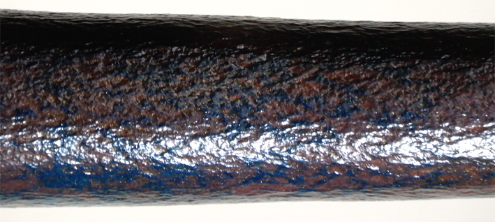 Die Oberflächenschicht ist blaurot gesprenkelt,